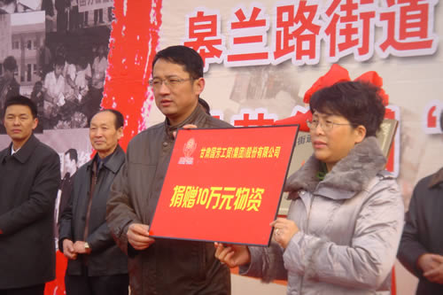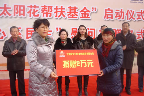 2012元月6日下午3時,甘肅國芳集團聯合城關區(qū)皋蘭路街道黨工委、辦事處舉行了“創(chuàng)先爭優(yōu)、扶貧濟困”太陽花幫扶基金啟動儀式,充分體現民生為本的服務宗旨,著力搭建社會幫扶救助平臺,切實解決弱勢群體實際困難,促進和諧街道建設。