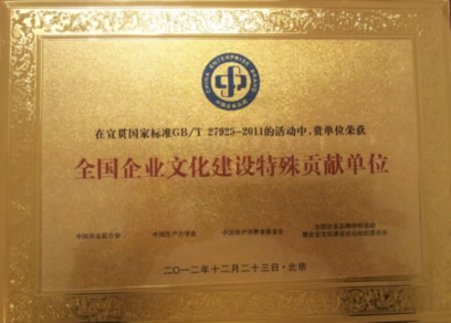 2012年度“全國(guó)企業(yè)文化建設(shè)特殊貢獻(xiàn)單位”榮譽(yù)證書