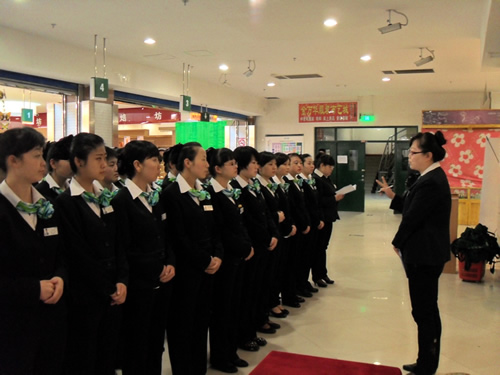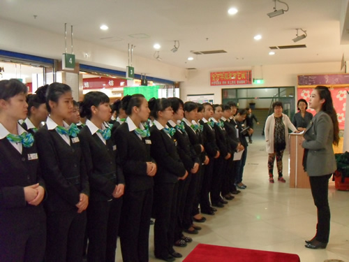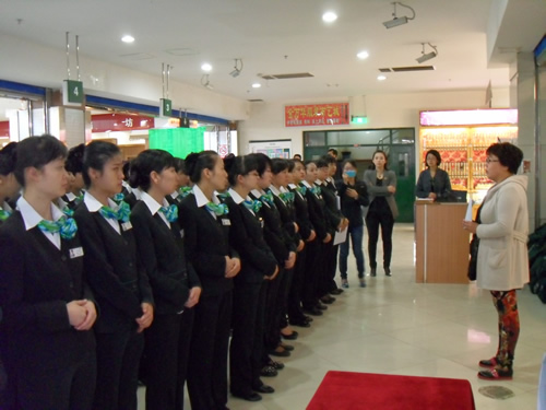 2013年4月9日是一個(gè)普通的工作日,但卻是國芳集團(tuán)收銀部崗位技能管理水平提升和發(fā)展歷程上非常重要的一天,因?yàn)榻裉靽技瘓F(tuán)零售板塊蘭州地區(qū)收銀員職業(yè)技能評定工作正式拉開帷幕。早上8點(diǎn)整,在蘭州國芳綜超廣場店正式召開了本次活動(dòng)的動(dòng)員會(huì),動(dòng)員會(huì)由收銀部經(jīng)理韓曉麗女士主持,蒞臨現(xiàn)場的公司領(lǐng)導(dǎo)有集團(tuán)總裁助理、財(cái)務(wù)總監(jiān)余麗華女士,集團(tuán)總裁助理、人力資源總監(jiān)孟麗女士,集團(tuán)培訓(xùn)經(jīng)理、蘭州百貨人力資源經(jīng)理孫曉輝女士,綜超人力資源經(jīng)理馬琳先生。