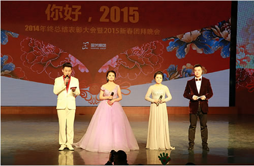 2015年2月9日晚,在蘭州37中(蘭州女子專業(yè)中等?茖W(xué)校)5樓藝術(shù)廳內(nèi),國芳集團“你好,2015”2014年終總結(jié)表彰大會暨2015年新年盛典溫馨開演。恰逢國芳集團成立十五周年,晚會現(xiàn)場充滿了溫馨、喜慶和感動。晚會延用了去年的大型LED顯示屏、多組VCR、微信平臺等廣受好評的元素,并創(chuàng)新的融入了中華名族傳統(tǒng)的禮儀文化,漢唐古典舞的壯觀優(yōu)美,員工孩子們《弟子規(guī)》的可愛表演,都在為晚會添加了精彩度的同時,將傳承禮儀所需要的高尚美德這一思想深入的傳達到每一位員工的心中。員工們精心準(zhǔn)備的節(jié)目一個比一個精彩,極具藝術(shù)表現(xiàn)力和觀賞性,董事長也被熱烈的氣氛所感染,親自上臺演唱了兩首歌曲,把晚會推向了高潮。最后,國芳集團年終晚會在祥和熱烈的氣氛中落下了帷幕。讓我們共同期待來年的精彩!