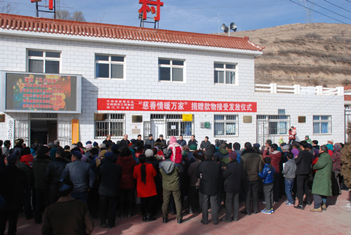 2016年1月21日由甘肅省慈善總會、甘肅國芳工貿(mào)集團聯(lián)合開展的“慈善情暖萬家”捐贈物資接受發(fā)放儀式在青嵐山鄉(xiāng)大坪村隆重舉行。省慈善總會常務副會長張瑞堂同志、副會長張忠健同志,甘肅國芳工貿(mào)集團副總經(jīng)理白海源先生,定西市政府副市長李斌同志及市區(qū)民政局、青嵐山鄉(xiāng)政府主要負責同志參加了儀式。省慈善總會聯(lián)合國芳工貿(mào)集團籌措價值120萬元的衣物5100多件,資助青嵐山鄉(xiāng)3000多戶困難群眾,幫助他們解決穿衣方面的困難。