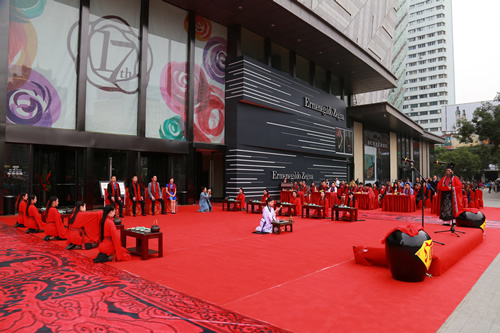 國芳集團十七周年司慶大型文化活動——漢式迎賓禮于9月3日上午8時30分,在國芳百貨正西門正式上演。除集團各分子公司管理人員外,還邀請了與國芳集團合作多年的數(shù)十名供應(yīng)商代表一同出席此活動。