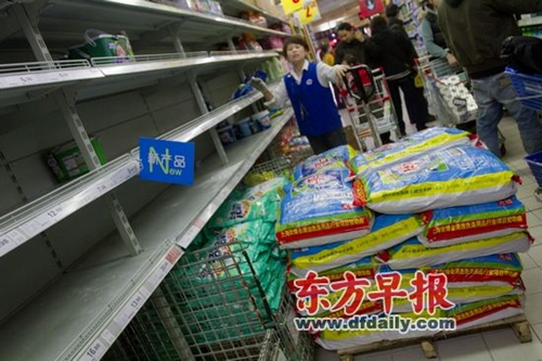 據(jù)上海市商務(wù)委有關(guān)人士透露,由于補貨及時,昨天下午1時后全市各大超市、賣場相關(guān)貨架基本已恢復(fù)正常。