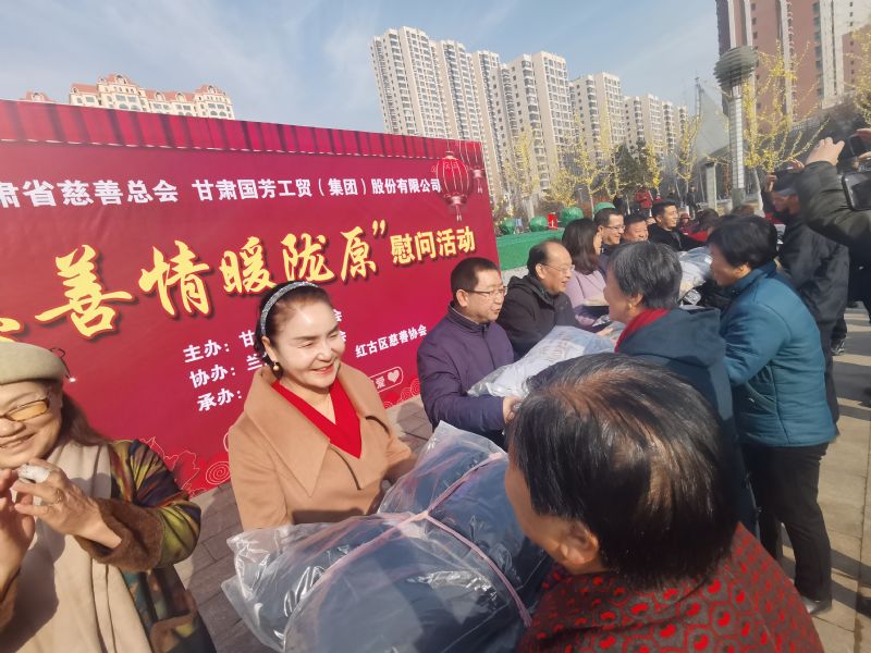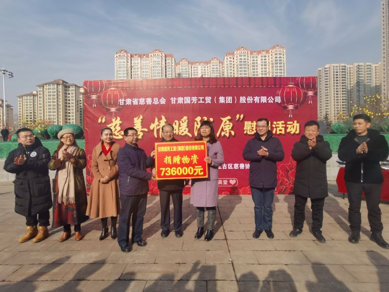 2020年1月14日,甘肅省慈善總會、蘭州市慈善會以及紅古區(qū)民政局?jǐn)y甘肅國芳工貿(mào)(集團)股份有限公司在蘭州市紅古區(qū)海石廣場共同舉行“慈善情暖隴原”暨物資捐贈活動,將2000件棉衣,1200余件秋褲,2000余件保溫杯以及1000余件棉拖合計價值73.6萬元的過冬物資帶給蘭州市紅古區(qū)的困難群眾。