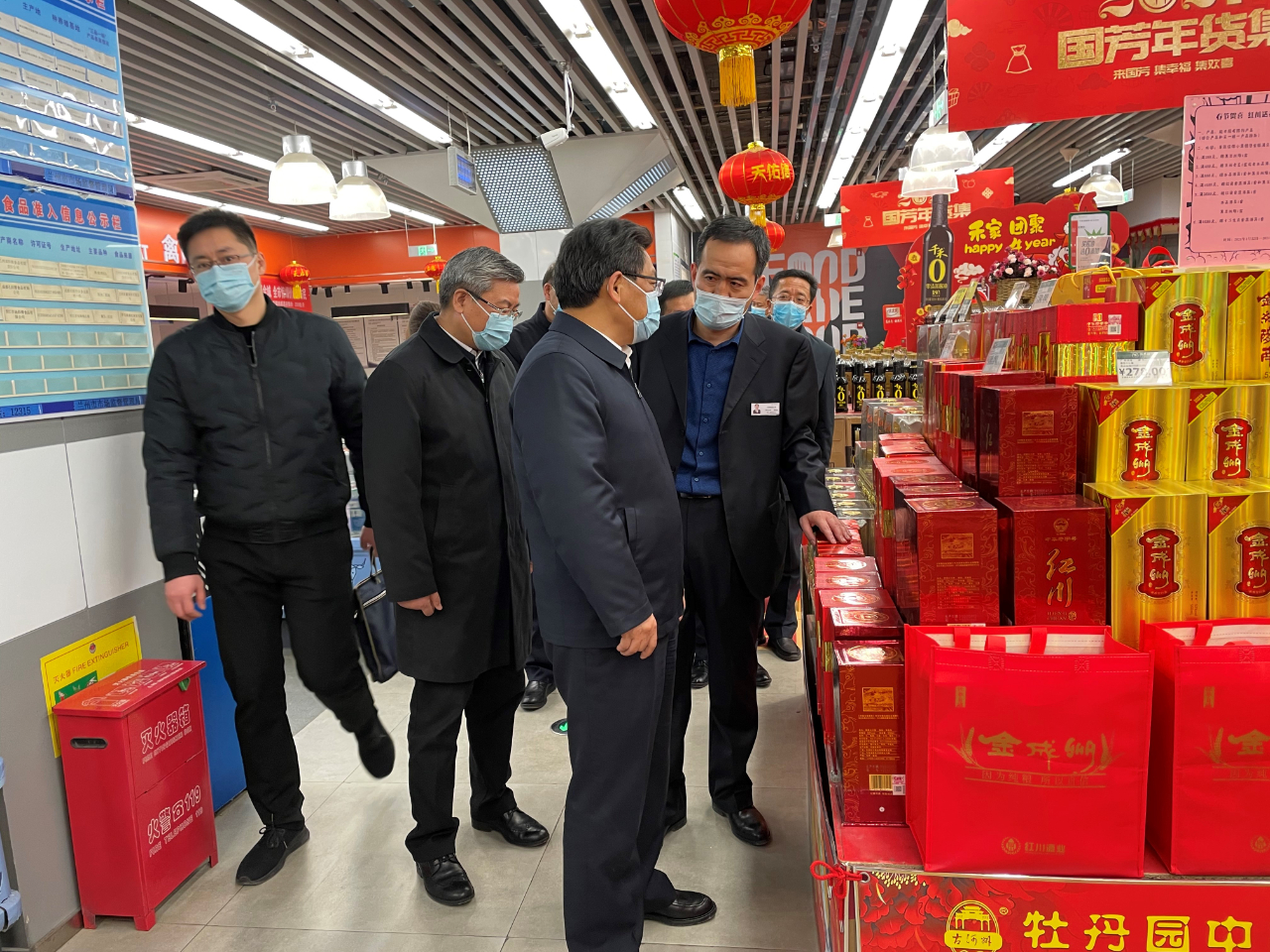 2月10日,甘肅省委副書記、省長(zhǎng)任振鶴,甘肅省委常委、蘭州市市委書記李榮燦,甘肅省政府秘書長(zhǎng)李志勛,甘肅省市場(chǎng)監(jiān)管管理局局長(zhǎng)王忠習(xí),蘭州市市長(zhǎng)張偉文等省市領(lǐng)導(dǎo)一行調(diào)研指導(dǎo)春節(jié)保障供應(yīng)及慰問(wèn)超市一線員工。