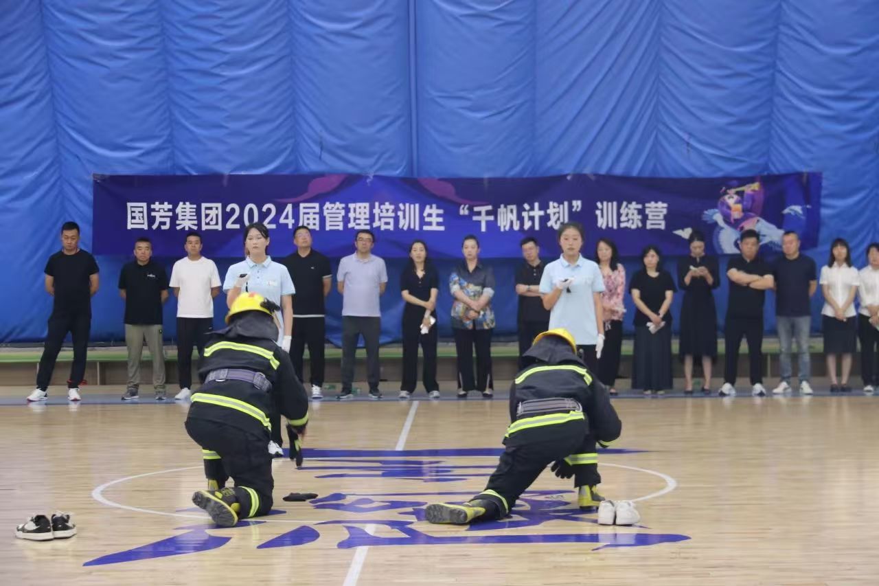 天朗氣清的日子里,管理培訓(xùn)生的軍訓(xùn)匯演悄然在國芳百貨81籃球館拉開帷幕。整齊的方陣,颯爽的英姿,堅定的目光,嘹亮的口號,無一不展現(xiàn)了多日來軍訓(xùn)的成果。通過儀容儀表的訓(xùn)練、團(tuán)體合作訓(xùn)練、滅火器的使用、消防水帶的連接、消防服穿戴等環(huán)節(jié)的展示,不僅提高了團(tuán)隊的執(zhí)行力和凝聚力,更提高了員工集體責(zé)任意識和自律意識。